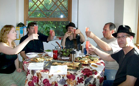 Toasting a fun day at rehearsal, and shooting pictures,May 16, 2010L-R: Megan, Bob, Vince, Bermuda, Paul.
